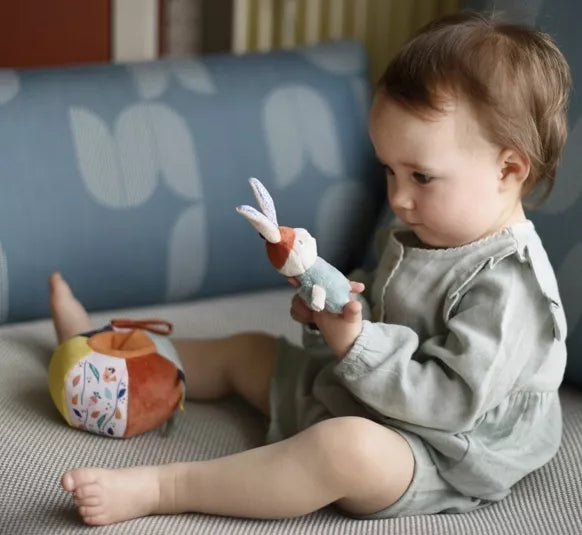 La balle Gabin Lapin est un jouet plein d'activités d'éveil :