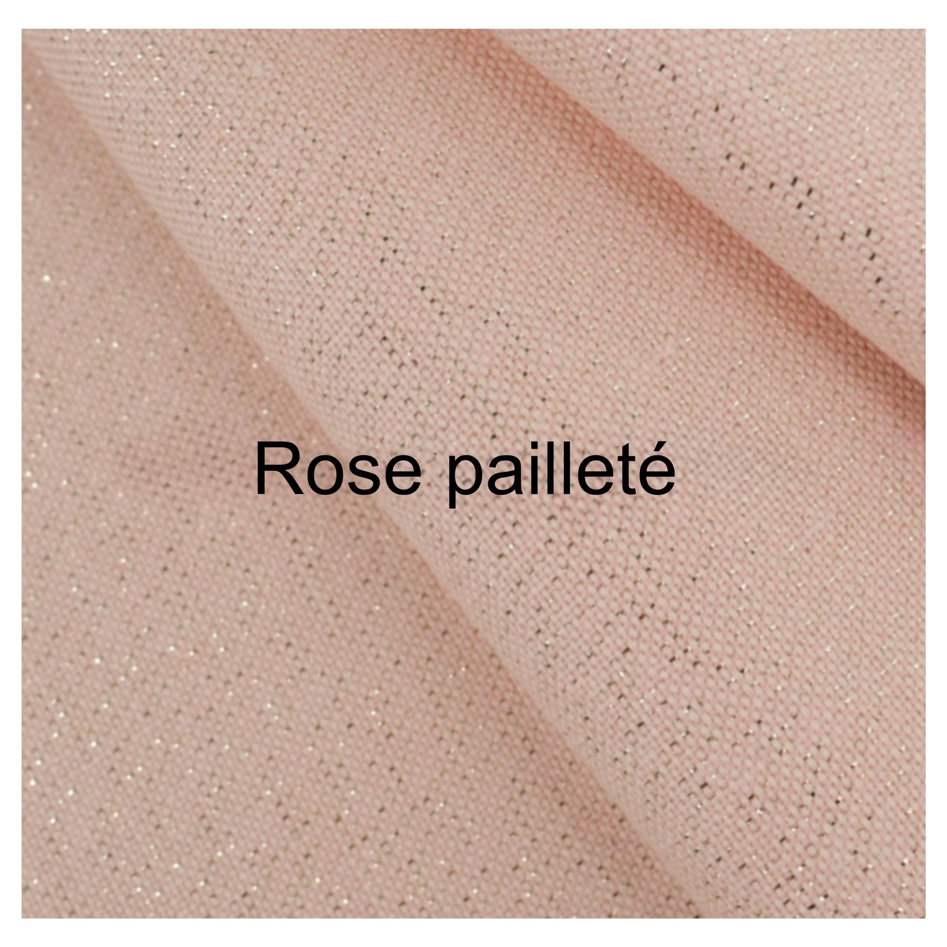 pailleté, rose  Sur le rabat est cousu une fleur en double gaze blanc cassé.